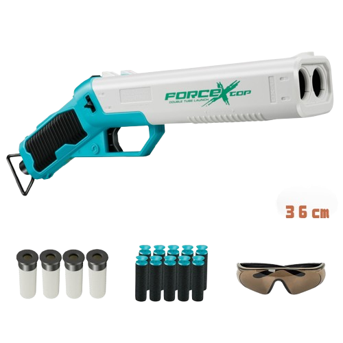 Дитячий дводульний обріз бірюзово-білого кольору — це захопливий ігровий набір для юних шанувальників пригод і активних ігор. Цей безпечний іграшковий бластер із м'якими кулями ідеально підійде для рольових ігор, змагань із друзями та веселого проведення часу на свіжому повітрі або вдома. Набір містить сам обріз, захисні окуляри та 40 м'яких снарядів, що дає змогу відразу розпочати гру.