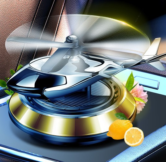 Ароматизатор освіжувач у машину на торпедо Вертоліт (золотистий) від сонячної енергії — це стильний і практичний аксесуар для вашого автомобіля, який не тільки забезпечує приємний аромат у салоні, але й слугує декоративним елементом. Ароматизатор зроблений у формі мініатюрного вертольота синього кольору, який обертається завдяки вбудованому сонячному елементу. Цей пристрій не вимагає батарейок або зовнішнього живлення — він працює виключно на сонячній енергії, що робить його екологічно чистим та економним рішенням.