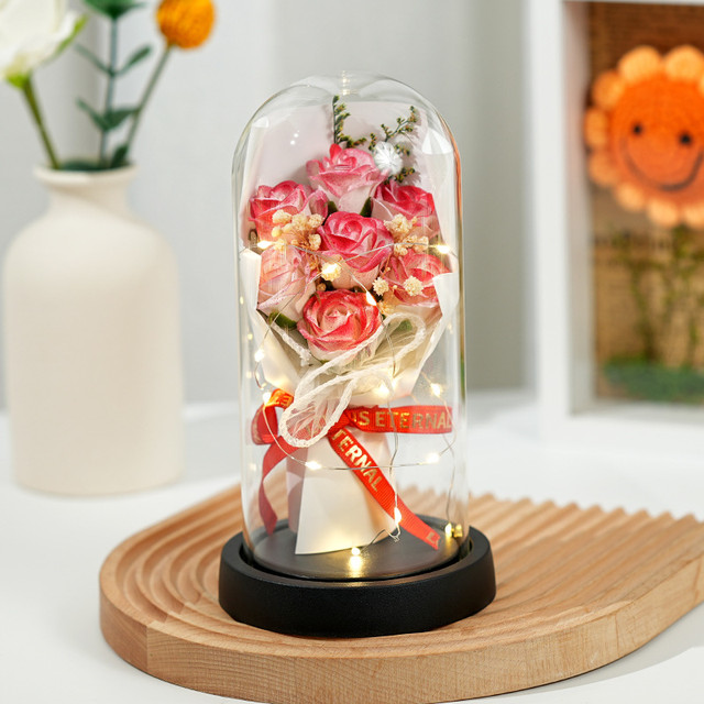 Троянди в колбі не в'януть і зберігають свій привабливий вигляд надовго, що робить цей подарунок символом невідчувальних почуттів і спогадів.
